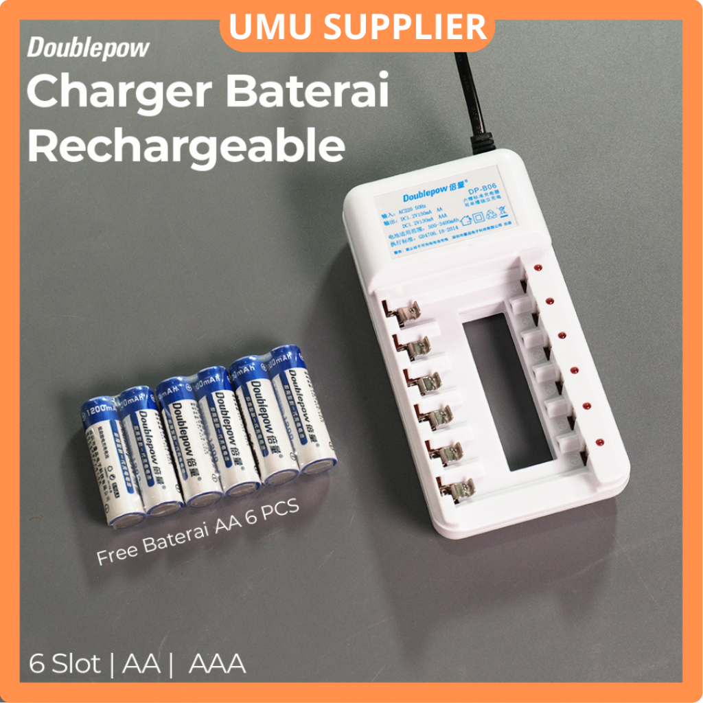 (UMU SUPPLIER) SANJI DOUBLEPOW CHARGER BATERAI 6 SLOT DP B06 AA AAA NI MH NI CD RECHARGEABLE